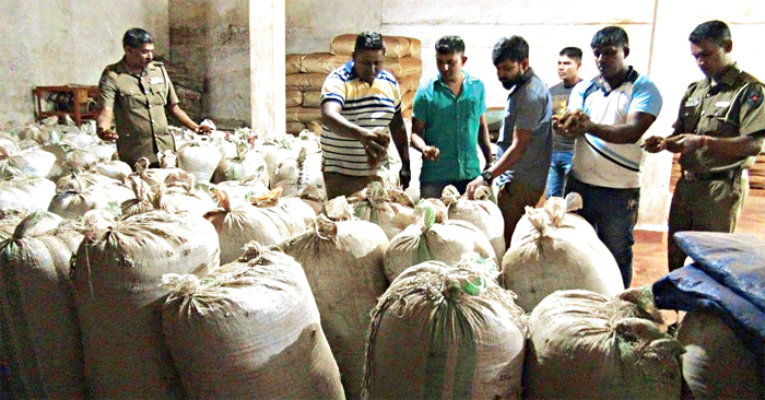 කසළ තේවලට රසායනික ද්රව්ය යොදා කළු තේ සකසන මෙම කර්මාන්ත ශාලාව තුළ තිබී කසළ තේ කොළ කිලෝ ලක්ෂ එකහමාරක් පමණ සොයා ගෙන එම ගබඩාව සීල් කරනු ලැබීය.