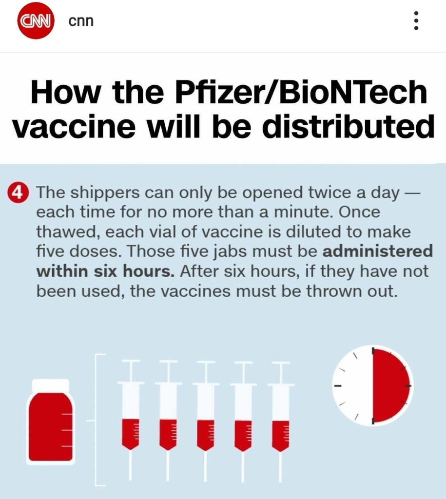 එන්නත ලබාදෙන්න යද්දි විනාඩියක් ගතවෙන්න පෙරාතුව අර බහාලුම ඇරලා එන්නත් ගන්න ඕනෙ කියල කියවෙනව. එක එන්නත් සාන්ද්රගත බහාලුමකින් තනුක කරගෙන මාත්රා පහක් හදාගන්න පුලුවන්. එහෙම හදාගත්ත එන්නත් පැය පහක් ඇතුලත රෝගීන්ට ලබාදිය යුතු බවත් සඳහන් වෙනව. දැනට තියෙන තත්වය මේක. කැනඩාවට මේ සතිය අග වනවිට එන්නත් තොගයක් එන බව ප්රකාශ කරල තියනව. Pfizer සමාගම එක්ව එන්නත සොයාගැනීමටත් පෙර ගිවිසුම්ගත වූ කැනඩා රජය එන්නත් මාත්රා මිලියන 76ක් ඇණවුම් කර තිබෙනව.