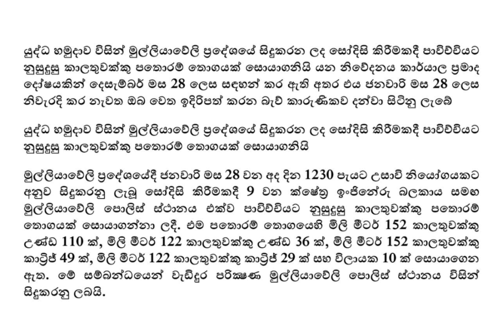 Sign in Welcome! Log into your account your username your password Forgot your password? Get help Privacy Policy Password recovery Recover your password your email A password will be e-mailed to you. Homeදේශීයවිශාල ආයුධ තොගයක් මුල්ලිිිිිිිිියාවේලි ප්රදේශයෙන් හමුදාව සොයා ගනී දේශීය විශාල ආයුධ තොගයක් මුල්ලිිිිිිිිියාවේලි ප්රදේශයෙන් හමුදාව සොයා ගනී By Manoj Rathnayaka January 29, 2021 0 228 Share FacebookTwitterPinterestWhatsApp යුද්ධ හමුදාව විසින් මුල්ලියාවේලි ප්රදේශයේ සිදුකරන ලද සෝදිසි කිරීමකදී පාවිච්චියට නුසුදුසු යුද උපකරණ තොගයක් සොයාගනියි READ: ජාත්යන්තරයට එන්න LPL වලින් ලැබුණු සහයෝගය ඉතා විශිෂ්ටයි – රමේෂ් මෙන්ඩිස් Share FacebookTwitterPinterestWhatsApp Previous articleකොවිඩ් මර්දන එන්නත් පළමු තොගය ජනපති භාර ගනියිNext articleකොරෝනා පාලනයෙන් දහවැනියා ලංකාව Manoj Rathnayakahttps://www.lifetraveler.lkTwo-Time State Television Awards Winners 2021, Founder/Editor in Chief – The Life Traveler digital media network. RELATED ARTICLES දේශීය BREAKING අද මධ්යම රාත්රියේ සිට 18 දක්වා පෙට්රල් වාහන සඳහා ‘QR’ ක්රමය ඉවතට April 11, 2026 දේශීය ගල් අගුරු හොදද නැද්ද බලන්න මම කාලා බලන්නේ නැහැ ඒක කරන්නේ පරීක්ෂණාගාරවල නියමිත විදියට, ජනපති අනුර කුමාර දිසානායක April 7, 2026 දේශීය මෙහෙම ගියොත් ලංකා රග්බි වලපල්ලටම යයිද? March 27, 2026 නවතම වීඩියෝ 🔴වචනේ රැක්ක ජනපති!! කුමාර ජයකොඩි අස්කලාද?ඇතුලේ වෙච්ච දේ ගැන භාරත තෙන්නකෝන් හෙළිකරයි. නිරුක්ෂගෙන් විපක්ෂයට අභියෝගයක්.ආණ්ඩුවට කැබිනට් එකට මුදලක් ගියානම් අපි විපක්ෂය එක්ක හිටගන්නවා. ලාල් කාන්තගේ කෝටි 60කඅතයට ගණුදෙණුවක්!!ජාතික ගොවිජන එකමුතුවෙන් බරපතල හෙළිදරව්වක්!! ජනපති කියලා ඕන ගාණක් වියදම් කරන්න විදුලිය කපන්න එපා කියලා. සුජීව සේනසිංහ අද හෙළිකලදේ. පුවත් පාප්වහන්සේට දෝශාරෝපණය කළ ට්රම්ප් තමන් ජේසුස්ට සමාන කර ගනී. April 13, 2026 BREAKING අද මධ්යම රාත්රියේ සිට 18 දක්වා පෙට්රල් වාහන සඳහා ‘QR’ ක්රමය ඉවතට April 11, 2026 ගල් අගුරු හොදද නැද්ද බලන්න මම කාලා බලන්නේ නැහැ ඒක කරන්නේ පරීක්ෂණාගාරවල නියමිත විදියට, ජනපති අනුර කුමාර දිසානායක April 7, 2026 මෙහෙම ගියොත් ලංකා රග්බි වලපල්ලටම යයිද? March 27, 2026 Load more පැරණි පුවත් April 2026 March 2026 February 2026 January 2026 December 2025 November 2025