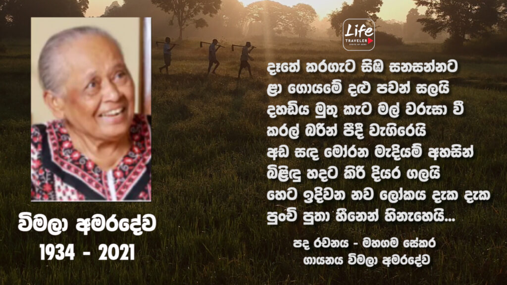 පණ්ඩිත් අමරදේවයන්ගේ බිරිද වන විමලා අමරදේව මහත්මිය ඊයේ සවස (8 වැනිදා) අභාවප්රාප්ත වී තිබෙනවා.