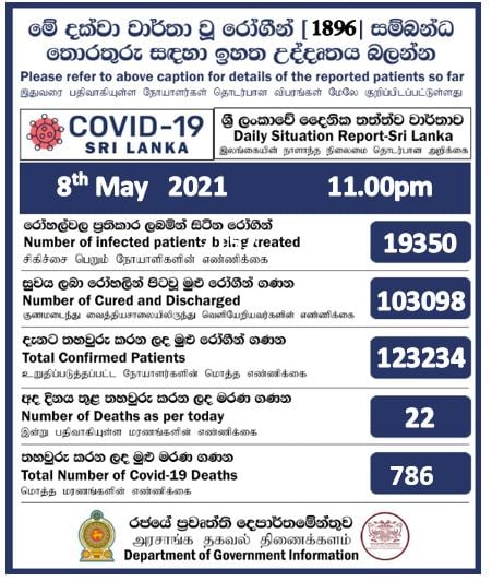 මේ අතර අද දිනයේ රෝගයෙන් මියගිය ගනන 22ක් වු අතර මේ හේතුවෙන් කොවිඩ් වසංගතයෙන් මියගිය සම්පුර්ණ ගනන 766ක් වනවා.