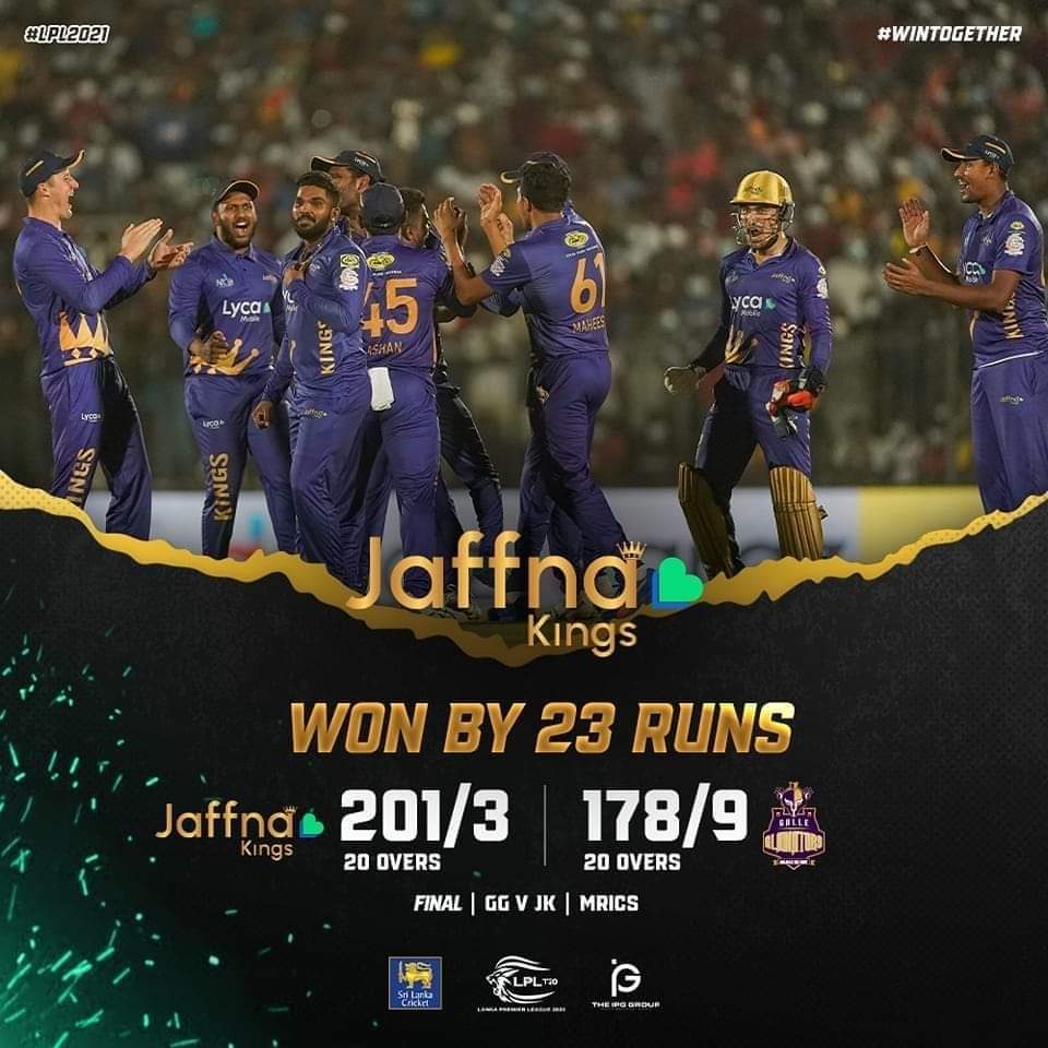 ගෝල් ග්ලැඩියේටර්ස් කණ්ඩායම පරාජය කරමින් 2021 LPL කිරුළ ජය ගැනීමට ජැෆ්නා කිංග්ස් කණ්ඩායම සමත් වුණා. ඒ ලකුණු 23කින්. තරගය පැවැත්වුණේ හම්බන්තොට සූරියවැව ක්රීඩාංගණයේදී.