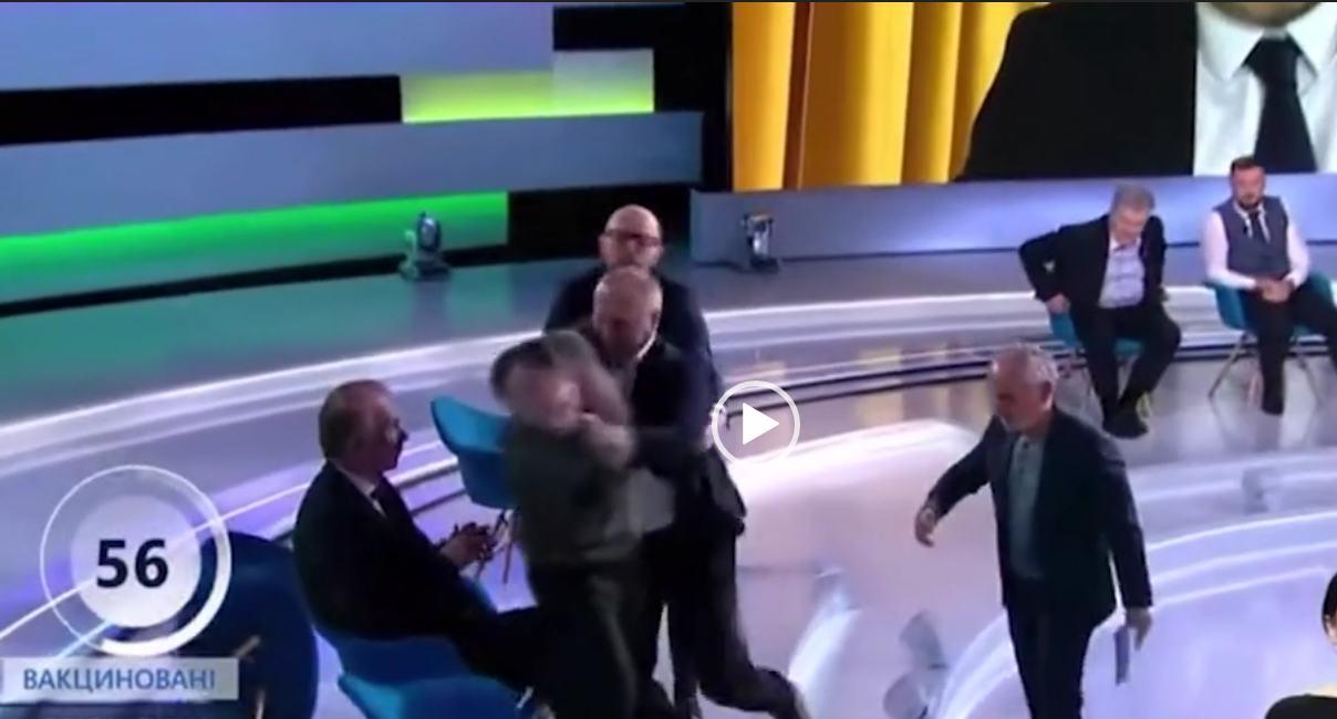 යුක්‍රේන මාධ්‍යවේදියෙකු සජීවී රූපවාහිනී වැඩසටහනක් අතරතුර රුසියානු හිතවාදී යුක්‍රේන දේශපාලනඥයෙකුට පහර දේ (VIDEO)