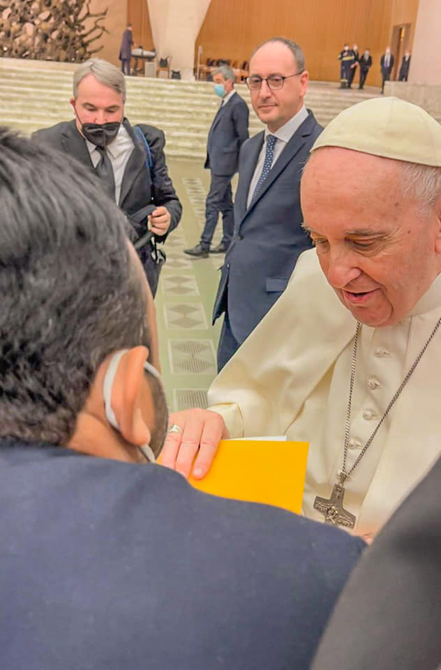 ශුද්ධවූ සභාවේ එඩේරාණන් වන අති උතුම් ශුද්ධෝත්තම ෆැන්සිස් පාප් වහන්සේ අද දිනයේ මුණගැසුණු අතර උන්වහන්සේ වෙත ශ්රී ලංකාව මේ වන විට මුහුණ දී ඇති දේශපාලනික, ආර්ථිකමය ගැටලූ පිළිබඳව සහ අවුරුදු තුනකට ආසන්න පාස්කු ප්රහාරයට ලක්වී වේදනාවෙන් සිටින වින්දියන්ට සාධාරණත්වයක් ඉෂ්ට නොවීම පිළිබඳවත් වගේම ඒ පිලිබදව වර්තමාන තත්ත්වය පිළිබඳවත් පුළුල් විග්රහයක් කිරීම සඳහා වූ සංදේශයක් උන්වහන්සේට ලබාදීමට අද දින හැකියාව ලැබිණි. මෙහි විශේෂත්වය වන්නේ පාස්කු ඉරුදින ත්රස්ත ප්රහාරයෙන් අවුරුදු තුනකට පසුව ශ්රී ලාංකීය දේශපාලඥයෙකු මුණගැසූ පළමු අවස්ථාව මෙය වීමයි. ඊට මා සමග නීතිඥ එරංග වැලිඅංගේ මැතිතුමාද සහභාගී විය. එමෙන්ම අති උතුම් ෆැන්සිස් පාප් වහන්සේගේ ලේකම් (Don Fabio Salerno) උන්වහන්සේ සමග මීට දින දෙකකට පෙර මුණගැසී දීර්ඝ සාකච්ඡාවක යෙදුණි. අප රටේ පවතින ආර්ථිකය වශයෙන් ගොඩගැනීමට අවශ්ය කරන මගපෙන්වීම සහ පාස්කු ඉරුදින ත්රස්ත ප්රහාරයේ වින්දියන්ට සාධාරණත්වය ඉෂ්ට කිරීම සඳහාද වතිකානුවේ අවධානය යොමු කිරීමේදී උන්වහන්සේලාගේ සහයෝගය සහ මගපෙන්වීම බලාපොරොත්තු වෙන බව අප ප්රකාශ කරන ලදී. එමෙන්ම උන්වහන්සේලාගේ මැදිහත්කම තවදුරටත් අපට ලබාදීම සදහා උන්වහන්සේ අති උතුම් ශුද්ධෝත්තම ෆැන්සිස් පාප් වහන්සේ සමග සාකච්ඡා කරන බව සදහන් කරන ලදී.