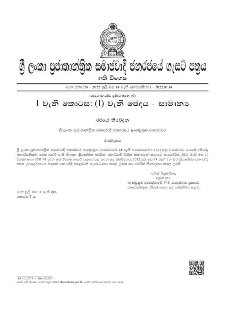 ව්යවස්ථාපිත ආයතන දෙපාර්තමේන්තු හා රාජ්ය සංස්ථා වන් කිහිපයක් ආරක්ෂක අංශ වලට පවරමින් ගැසට් නිවේදනයක් නිකුත් කර තිබෙනවා. බොහොමයක් මෙම ආයතන හිටපු අමාත්ය ධම්මික පෙරේරා අමාත්ය ධූරය යටතට ජනාධිපති වරයා විසින් යටත් කළ එවා වේ.