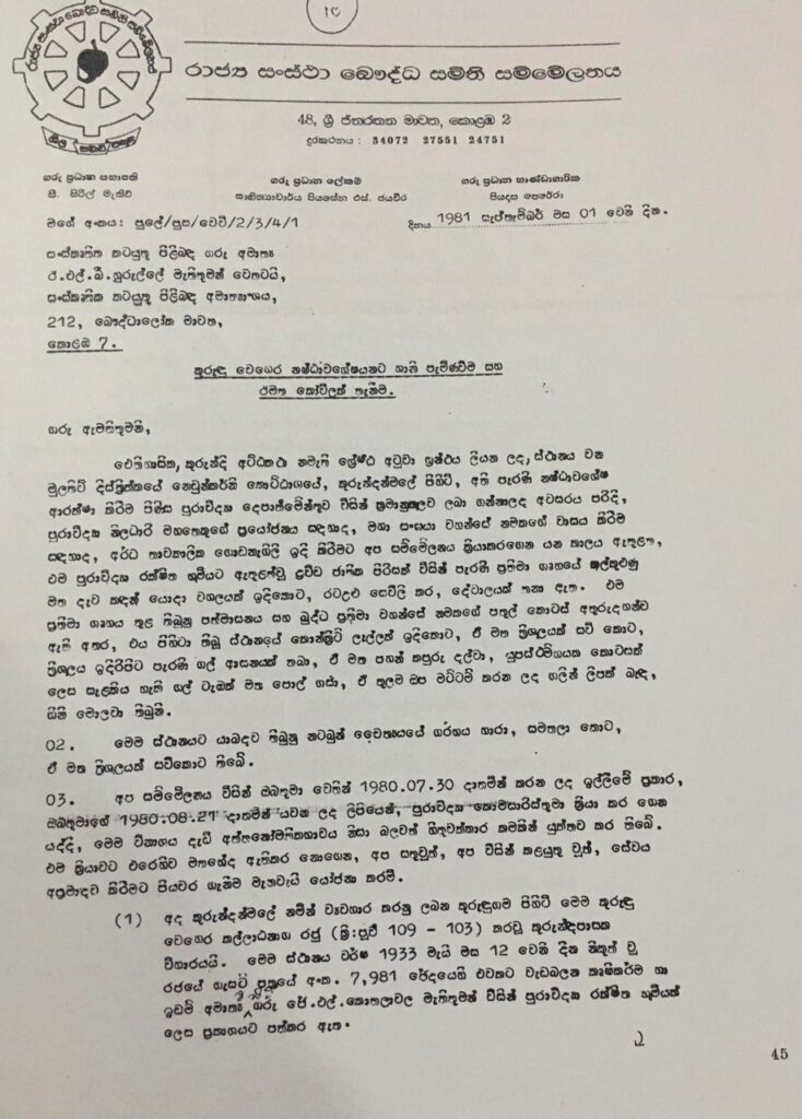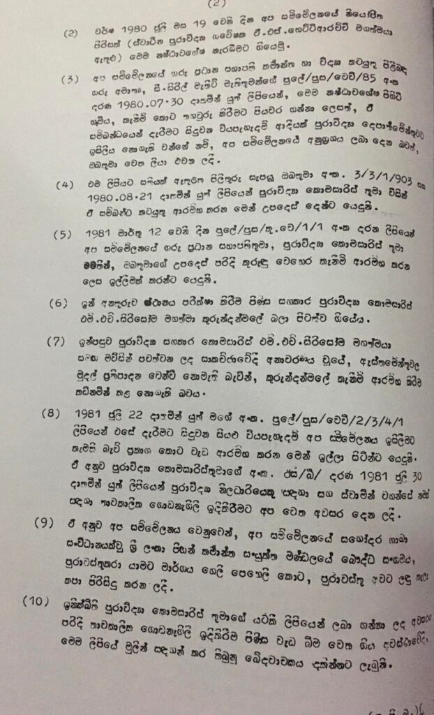 ”වර්තමානයේ අපි හඳුනගන්න කුරුන්දන්මලෙයි පුරාවිද්යා ක්ෂේත්රය මුලතිව් දිස්ත්රික්කයේ නෙඩුන්කර්නි කොට්ඨාසයේ කුරුන්දන්කුලම් ආශ්රිත ව පිහිටලා තියෙනවා. මේ විහාරයට අයත් නටබුන් සහිත ප්රදේශය 1933 මැයි 12 දින අංක 7981 දරණ ගැසට් පත්රයේ පළ කරන ලද නිවේදනයකින් පුරාවිද්යා රක්ෂිතයක් බවට ප්රකාශයට පත් කරලා තියෙනවා. 1895 දි විතර J. P. Lewis සටහන් කරලා තියෙන විදියට පසු කාලීන ව දෙමළ වැසියන් කුරුන්තනූර්හි කෝවිලක් ඉදි කරපු බව පේනවා. 1980 වගේ කාලය වෙද්දිත් මේ ස්ථානයේ එ වැන්නක් තිබුණා ද කියන කාරණාව ගැන මට අවබෝධයක් නැහැ. නමුත් 1981 සැප්තැම්බර් 01 වැනි දා රාජ්ය සංස්ථා බෞද්ධ සමිති සම්මේලනයෙ ප්රධාන ලේකම් ‘පියසේන එස්. ජයවීර මහතා’ විසින් සංස්කෘතික කටයුතු පිළිබඳ අමාත්ය ‘ඊ. එල්. බී. හුරුල්ලේ අමාත්යවරයා’ වෙත යැවූ ලිපියක (පිටපත්: පුරාවිද්යා කොමසාරිස් ආචාර්ය සද්ධාමංගල කරුණාරත්න මහතා / සහකාර පුරාවිද්යා කොමසාරිස් එම්. එච්. සිරිසෝම මහතා / ප්රාදේශීය සහකාර පුරාවිද්යා කොමසාරිස්, අනුරාධපුර) මේ විදියෙ සඳහනක් තියෙනවා.“… මුලතිව් දිස්ත්රික්කයේ නෙඩුන්කර්නි කොට්ඨාශයේ, කුරන්දන්මලේ පිහිටි, අති පැරණි නෂ්ඨාවශේෂ ආරක්ෂා කිරීම පිණිස පුරාවිද්යා දෙපාර්තමේන්තුව විසින් ක්රමානුකූලව ලබා ගන්නා ලද අවසරය පරිදි, පුරාවිද්යා නිලධාරි මහතෙකුගේ ප්රයෝජනය සඳහා ද, මහා සංඝයා වහන්සේ නමකගේ වාසය කිරීම සඳහා ද, අර්ධ තාවකාලික ගොඩනැගිලි ඉදි කිරීමට අප සම්මේලනය ක්රියාකරගෙන යන කාලය ඇතුළත, එම පුරාවිද්යා රක්ෂිත භූමියට ඇතුළත් වූ ද්රවිඩ ජාතික පිරිසක් විසින් පැරණි ප්රතිමා ගෘහයේ ගල්කුළුණු මත දැව කඳන් යොදා වහලයක් ඉදිකොට, රටඋළු සෙවිලි කර, දේවාලයක් තනා ඇත. එම ප්රතිමා ගෘහය තුළ තිබුනු පද්මාසනය සහ බුද්ධ ප්රතිමා වහන්සේ නමකගේ පතුල් කොටස් අතුරුදහන්ව ඇති අතර, එය පිහිටා තිබූ ස්ථානයේ කොන්ක්රීට් ලෑල්ලක් ඉදිකොට, ඒ මත ත්රිශූලයක් සවි කොට, ත්රිශූලය ඉදිරිපිට පැරණි ගල් ආසනයක් තබා, ඒ මත පහන් කපුරු දල්වා, යූපස්ථම්භයක කොටසක් ලෙස සැළකිය හැකි ගල් ටැඹක් මත පොල් ගසා, ඒ තුලම ඔප මට්ටම් කරන ලද ගලින් ලිපක් බැඳ, ගිනි මොලවා තිබුනි.02. මෙම ස්ථානයට යාබදව තිබුනු නටබුන් චෛත්යයයේ ගර්භය හාරා, සමතලා කොට, ඒ මත ත්රිශූලයක් සවිකොට තිබේ. 03. අප සම්මේලනය විසින් ඔබතුමා වෙතින් 1980. 07. 30 දාතමින් කරන ලද ඉල්ලීමේ ප්රකාර, ඔබතුමාගේ 1980. 08. 21 දාතමින් යවන ලද ලිපියෙන්, පුරාවිද්යා කොමසාරිස්තුමා ක්රියා කර ගෙන යද්දී, මෙම විනාශය දැඩි අත්තනෝමතිකභාවය නිසා බලවත් හිතුවක්කාර කමකින් යුක්තව කර තිබේ. එම ක්රියාවට එරෙහිව මතභේද ඇතිකර නොගෙන, අප සතුවූත්, අප විසින් කළයුතු වූත්, සේවය අප්රමාදව කිරීමට පියවර ගැනීම මැනවැයි යෝජනා කරමි. …” මේ සම්පූර්ණ ලිපිය මම සටහන එක්ක පළ කරන්නම්. ලංකා ඉතිහාසයේ අතිශය වැදැගත් ස්ථානයක් කුරුන්දි විහ