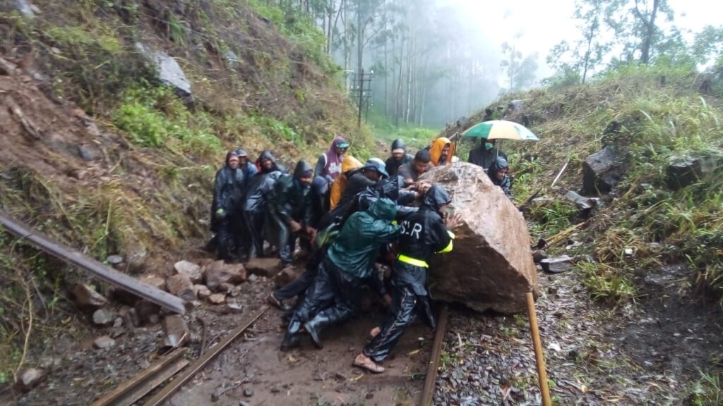 නානුඔය සහ පට්ටිපොළ දුම්රිය මාර්ග අංශයේ දුම්රිය සේවකයන් ඩක්කු.වල නැගී එම ස්ථානයට ලගා වී රේල් පීලි වලින් සාදා ගත් යකඩ ලිවර් යොදා ගනිමින් අතින් තල්ලුකරමින් අධික වර්ෂාවත් මීදුම ,ශීතල තද සුලං පවා නොතකමින් පැය හයක පමණ දුශ්කර කාලයක් වැයකර දුම්රිය මාර්ගයට කඩා වැටී තිබූ විශාල ගල්පර්වතය ඉවත් කල බව දුම්රිය දෙපාර්තමේන්තුවේ ප්රකාශයකු පැවසීය .