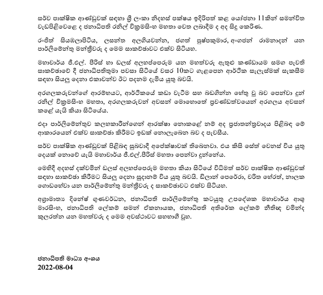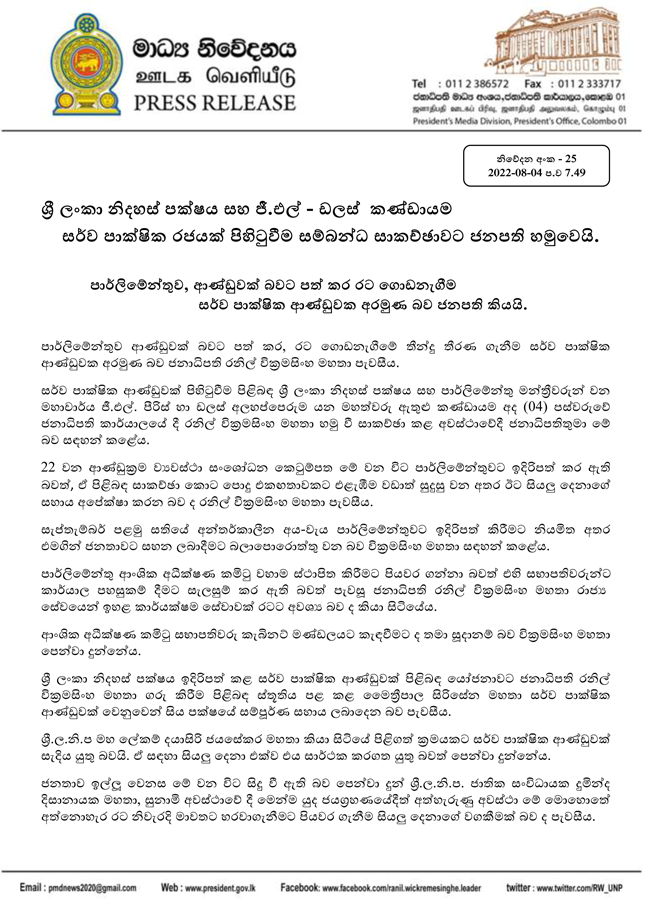 ඒ පිළිබඳ නිවේදනය පහතින්