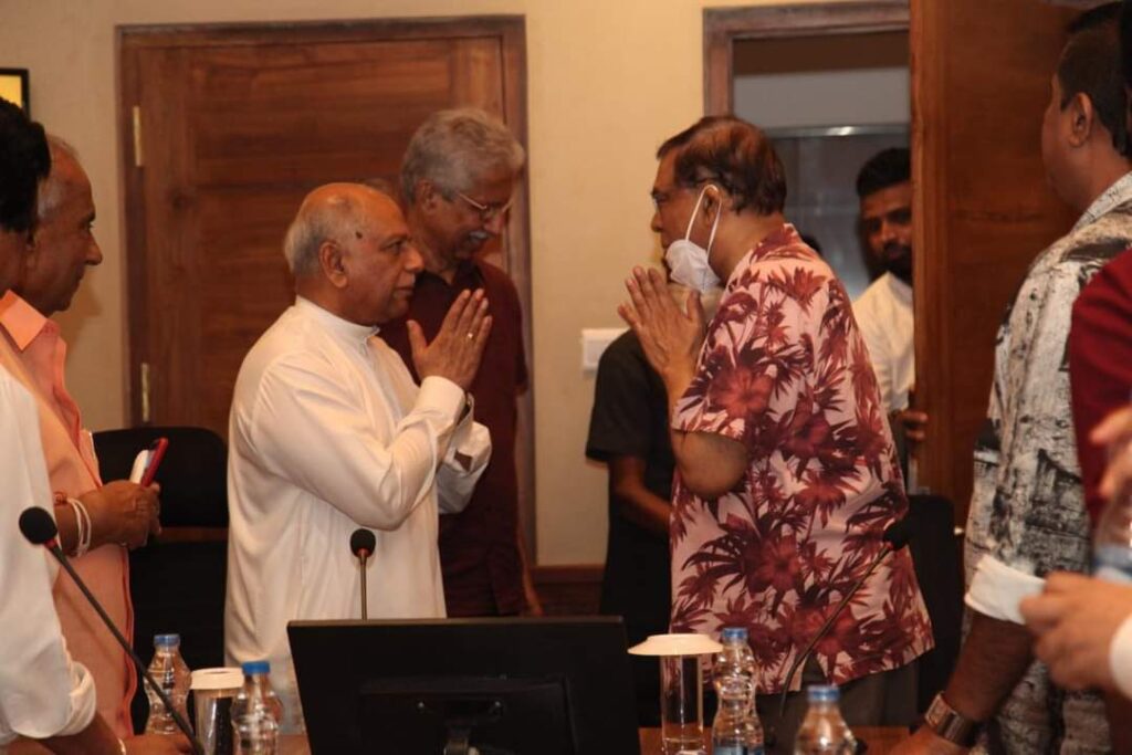 ඊයේ (05) අග්රාමාත්ය දිනේෂ් ගුණවර්ධන සහ පොදු ජන පෙරමුණේ සමාජිකයන් අතර හමුවක් පැවැත්වී තිබෙනවා. මෙම හමුව සදහා පොදුජන පෙරමුණේ ජාතික සංවිධායක බැසිල් රාජපක්ෂ, පාර්ලිමේන්තු මන්ත්රී නාමල් රාජපක්ෂ සහ තවත් සමාජිකයන් පිරිසක් සම්බන්ධ වූ බවයි වාර්තා වන්නේ