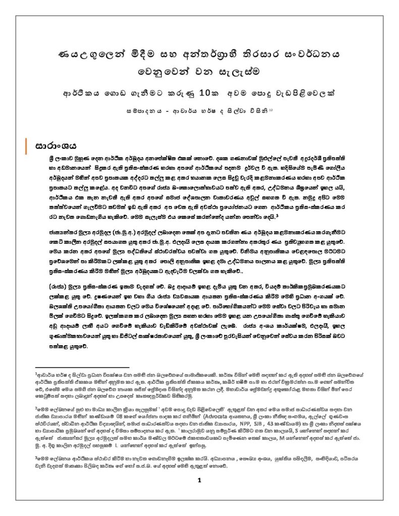 වත්මන් ආර්ථික අර්බුදයෙන් මිදීම සඳහා වන කෙටි කාලීන හා මධ්ය කාලීන ආර්ථික සැලස්මක් සමගි ජන බලවේගයේ පාර්ලිමේන්තු මන්ත්රී හර්ෂ ද සිල්වා විසින් ඉදිරිපත් කර තිබෙනවා.
