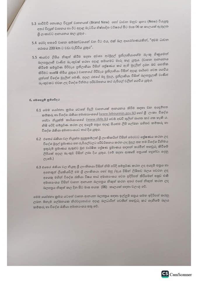 විදෙස්ගත ශ්රමිකයින් නීත්යානුකූල සහ විධිමත් ලෙස බැංකු ක්රමය හරහා මුදල් එවීම දිරිගැන්වීම සඳහා ක්රියාත්මක විදෙස්ගත ශ්රමිකයින්ට විද්යුත් වාහන ආනයනය සඳහා අවසර ලබාදෙන චක්රලේඛය නිකුත් කර තිබෙනවා.