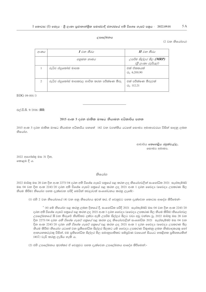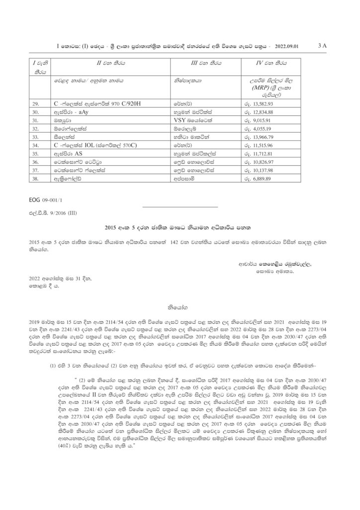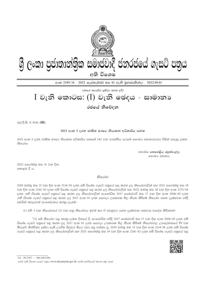 අදාළ ගැසට් නිවේදනය පහතින්,