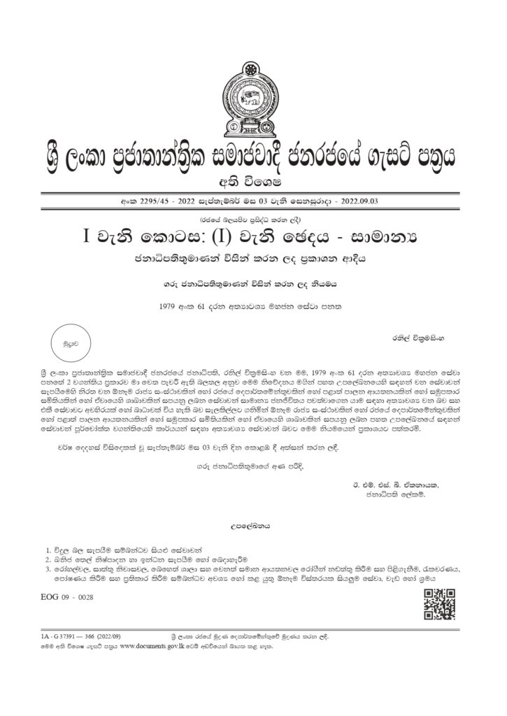 අදාළ ගැසට් නිවේදනය පහතින්,