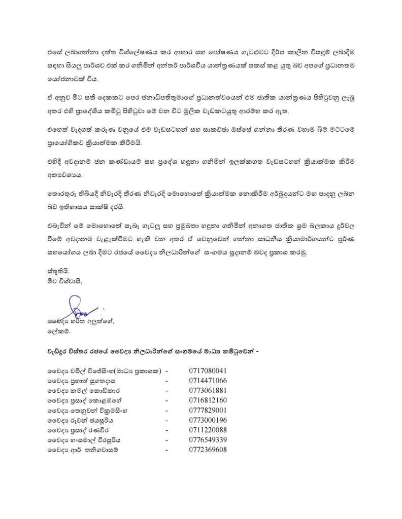 සාකච්ඡා වලට පමණක් සීමා නොවී මෙම පිළියම් වහාම ක්රියාත්මක කළ යුතු බවයි රජයේ වෛද්ය නිලධාරීන්ගේ සංගමය වැඩිදුරටත් පෙන්වා දෙන්නේ.