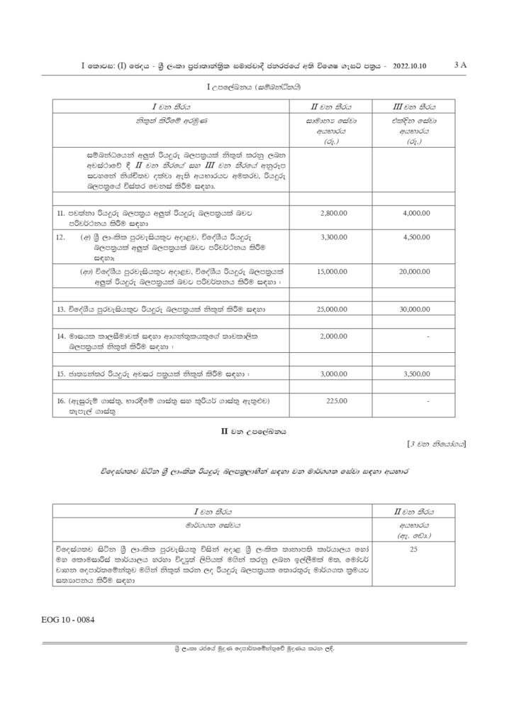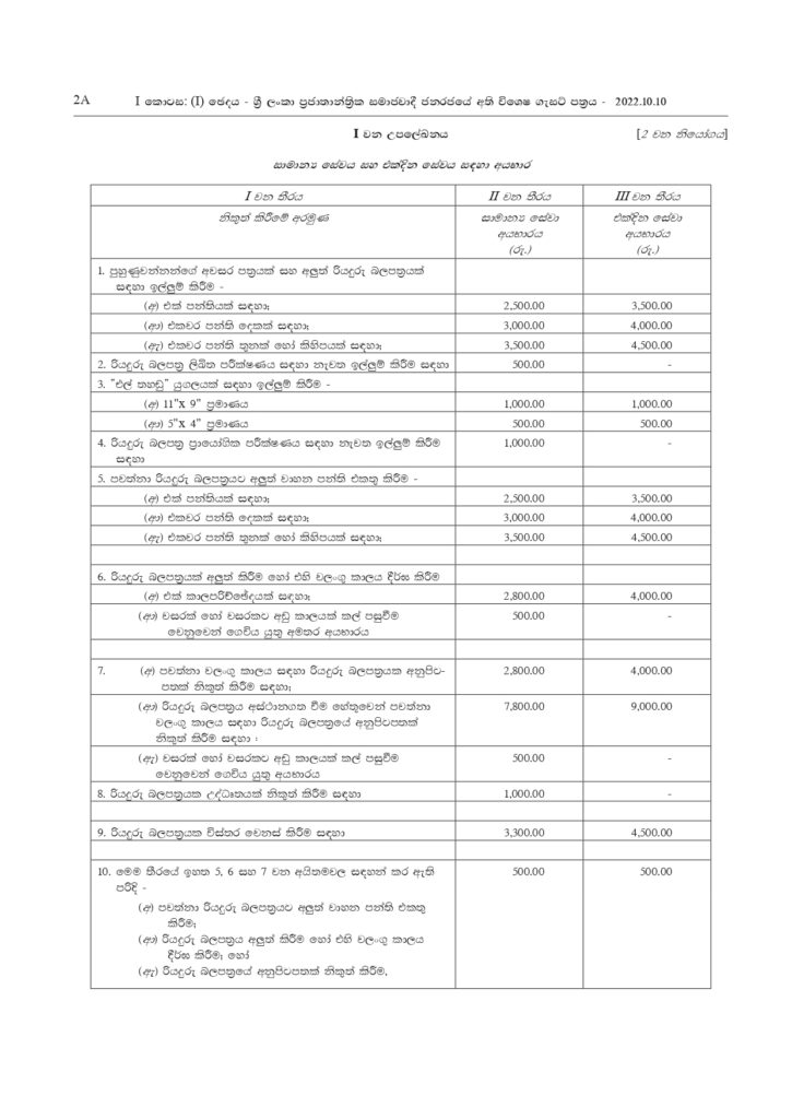 රියදුරු බලපත්රයක් ලබාගැනීම සඳහා වන ගාස්තු සංශෝධනය කරමින් නව ගැසට් නිවේදනයක් නිකුත් කර තිබෙනවා.