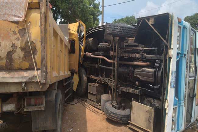 අද (15) දහවල් A9 මාර්ගයේ ගමන් කළ බස්රථයක් හැරවීමට යෑමේදී ඊට පිටුපසින් පැමිණි ටිපර් රථයක් හා ගැටීමෙන් අනතුරක් සිදුවුණා.