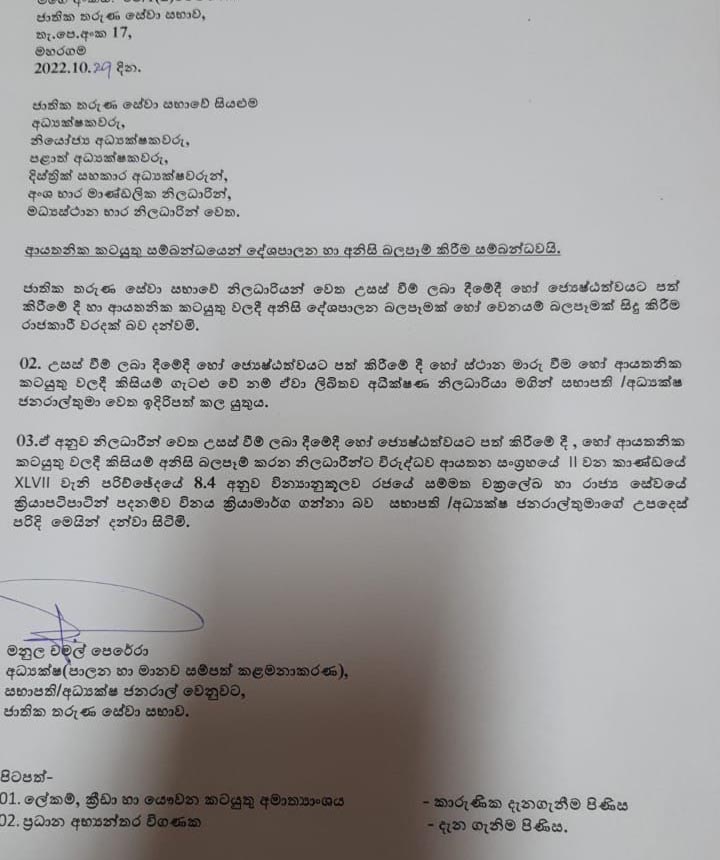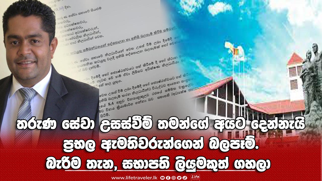 තරුණසේවාවේ සභාපතිවරයා නිකුත් කළ ලිපිය අපවෙත ලැබී තිබෙනවා. එම ලිපිය පහතින් >>