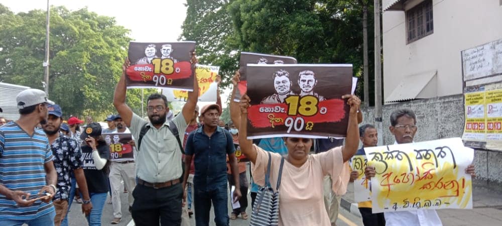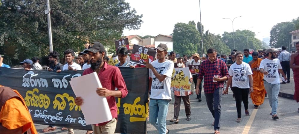 රැඳවුම් නියෝග යටතේ අත්අඩංගුවට ගෙන බන්ධනාගාර ගත කර සිටින වසන්ත මුදලිගේ සහ ගල්වැව සිරිධම්ම හිමියන් නිදහස් කරන ලෙස ඉල්ලා අන්තර් විශ්වවිද්යාල ශිෂ්ය බලමණ්ඩලය විසින් විරෝධතාවයක් අද කොළඹ දී සංවිධානය කර තිබුණා.