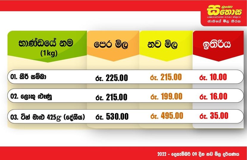 වශයෙන් මිල ගනන් පහත දමා තිබෙනවා. නව මිල ගණන් අද (09) සිට ක්රියාත්මකයි.