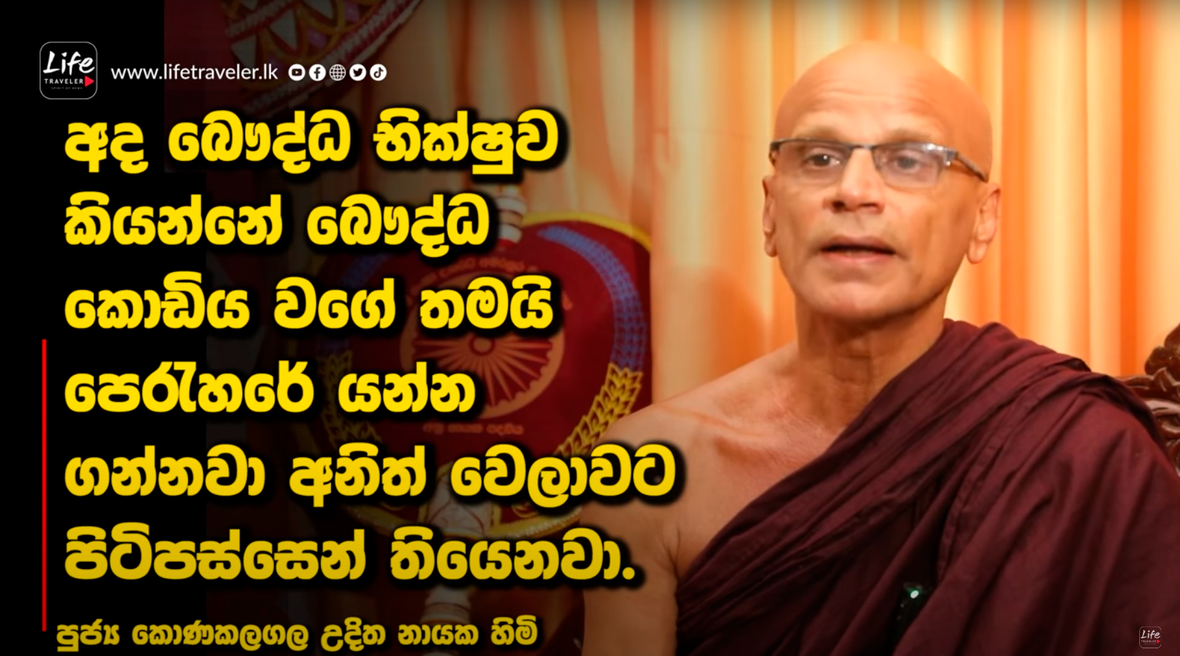 පක්ෂ දේශපාලනය විසින් බෞද්ධ භික්ෂුව ග්රහණය කර ගෙන ඇති බවත් මාධ්ය විසින් පෙන්වන භික්ෂුන් පිරිස මෙරට සමස්ත බෞද්ධ භික්ෂුන් වහන්සේලා නොවන බවත් පූජ්ය කෝණකලගල උදිත නායක හිමියන් වහන්සේ පවසනවා.