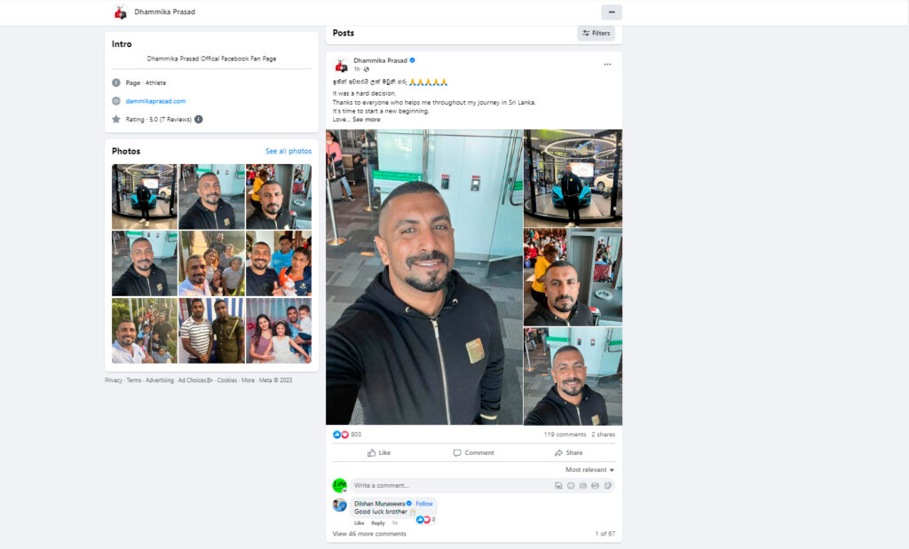 අද උදෑසන ඔහුගේ මුහුණු පොතේ ඒ බව සටහන් කර තිබුණා.