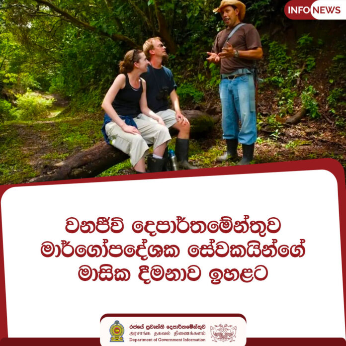 වනජීවි දෙපාර්තමේන්තුව මාර්ගෝපදේශක සේවකයින්ට මාසිකව ලැබුණු රුපියල් 700 ක දීමනාව රුපියල් 1000 දක්වා ඉහල නැංවීමට අමාත්ය මහින්ද අමරවීර මහතා ඉදිරිපත් කළ යෝජනාවට අමාත්ය මණ්ඩලයේ හා මුදල් අමාත්යාංශයේ එකඟතාවය අනුමැතිය හිමි වි තීබේ.