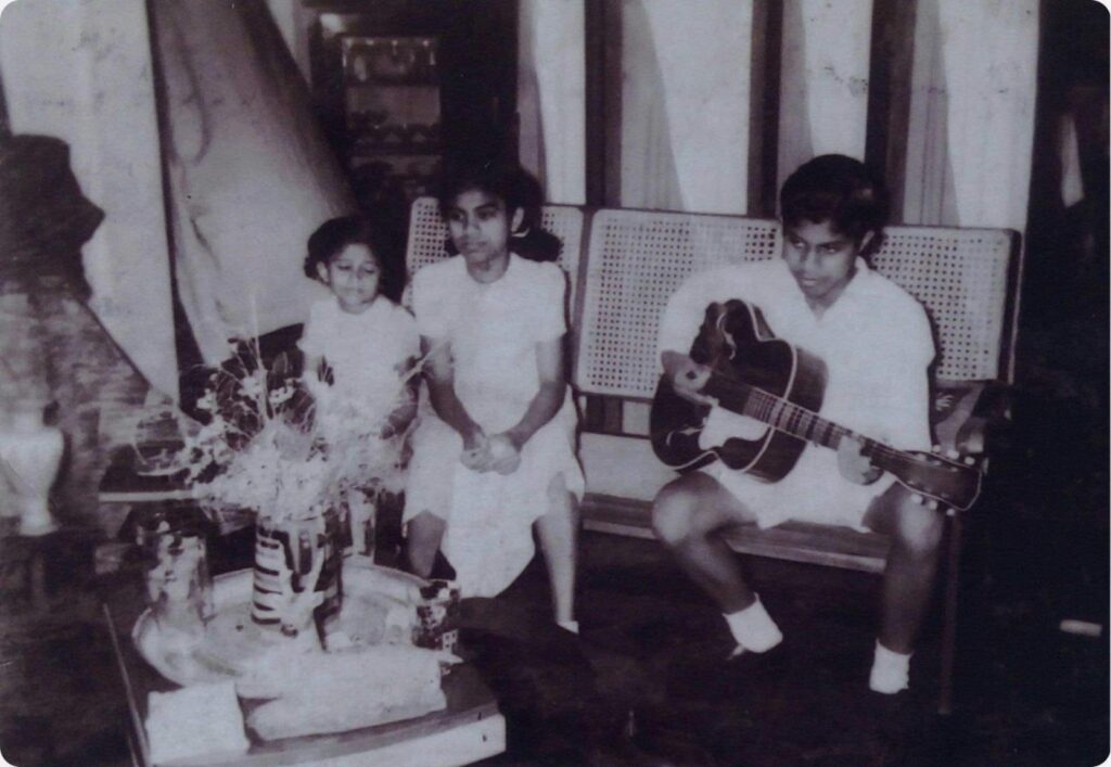 අපේ පිටිපන වීදියේ ඥාති නිවෙස්වල උත්සව ගැන සිතීමත් සතුටකි. සංගීත ගුලාවකි. නෙවිල් ගිටාරය වයමින් ගීත ගයයි. ෆ්රාන්සස් මුඩානය ( කුඩා අඩු උස රබානක්. උරහිස හා මුහුණට ළං වනසේ තබා ගෙන ඇඟිලි වලින් වයයි. විරිඳු කාරයින් ගසන රබාන මෙනි.) ගසයි. බලාසිටින්නටත් ආසයි. වරින්වර අතේ මුද්දෙන් ලී රව්මට ගසයි. නටයි, ගයයි. මේරි ස්ටෙලා හා ඇගේ සැමියා ඩේවිඩ් ද අපි සියලු දෙනාද ගැයුවෙමු. මේරි ස්ටෙලා පියානො වාදනයට සමතියකි. සුනිල් සාන්තයන්ගේ ගී ගැයීම අනිවාර්ය විය. ‘ වරෙන් හීන් සැරේ ‘ ගැයූ හැටි දැනුත් මගේ කනට ඇසෙන්නා සේය. ‘ වවුලෝ…..කියපන්කෝ වාසි අතට හෝයියා ‘
