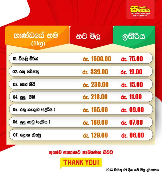 අද (09) සිට ක්රියාත්මක නව මිල ගණන් පහතින්,