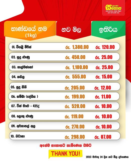 මිල අඩු කළ භාණ්ඩ ලැයිස්තුව පහතන්,