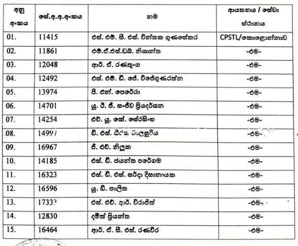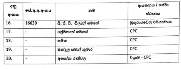 සේවයට බාධා වන අයුරින් සහ විනය විරෝධි ලෙස කටයුතු කිරීම සම්බන්ධයෙන් අනිවාර්ය නිවාඩු යවන ලද ඛනිජතෙල් නීතිගත සංස්ථාවේ සේවකයින්ගේ නම් ප්රකාශයට පත් කර තිබෙනවා.