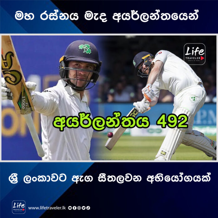සංචාරක අයර්ලන්ත කණ්ඩායම සහ ශ්රී ලංකාව අතර පැවති දෙවන ටෙස්ට් ක්රිකට් තරඟයේ පළමු ඉනිම ක්රීඩා කළ අයර්ලන්ත කණ්ඩායම මීට සුළු මොහොතකට පෙර ඉනිම අවසානයේ සියලු දෙනා දැවී ලකුණු 492 ක් රැස් කළා.