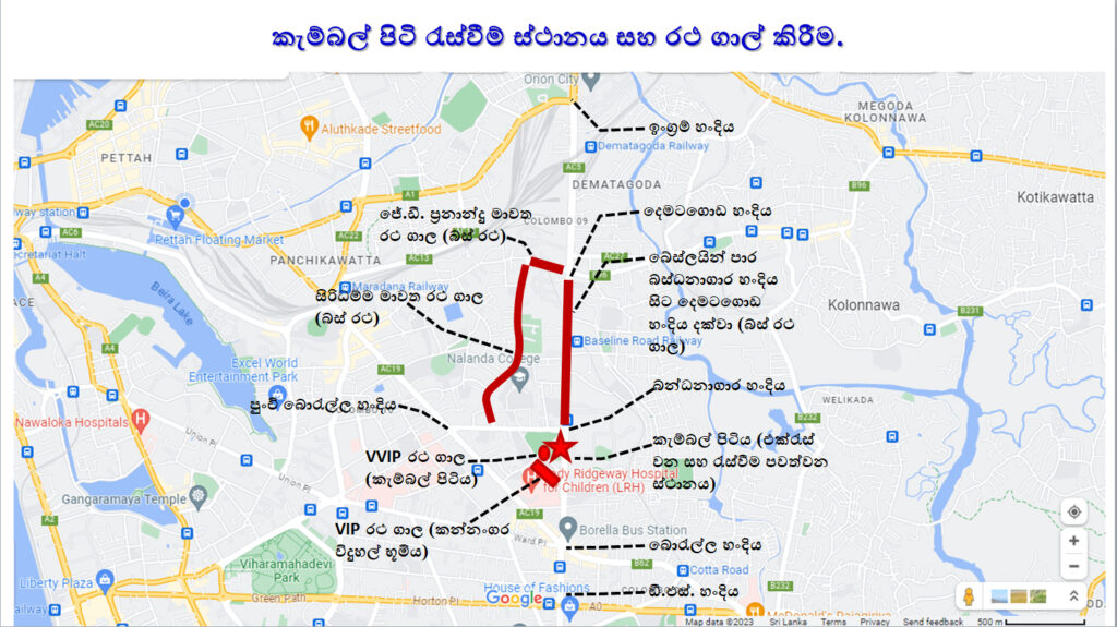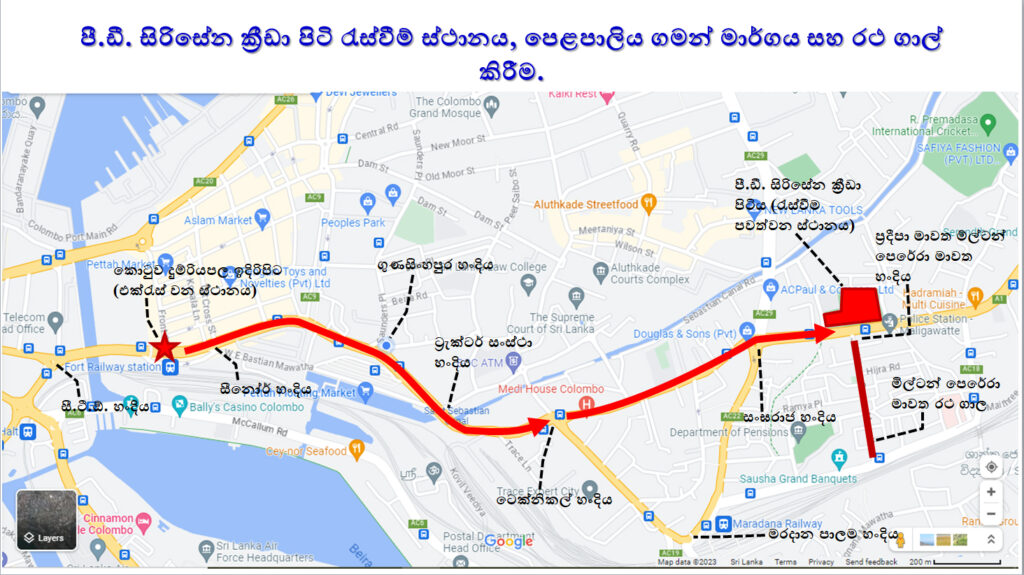 මැයි දිනය වෙනුවෙන් කොළඹ දී සංවිධානය කර ඇති මැයි පෙළපාලි ගමන් ගන්නා මාර්ගයන් සහා රථ ගාල් කිරීමේ හැකියාව ඇති ස්ථානයන් පහත රූප සටහන් මගින් දැක්වේ.