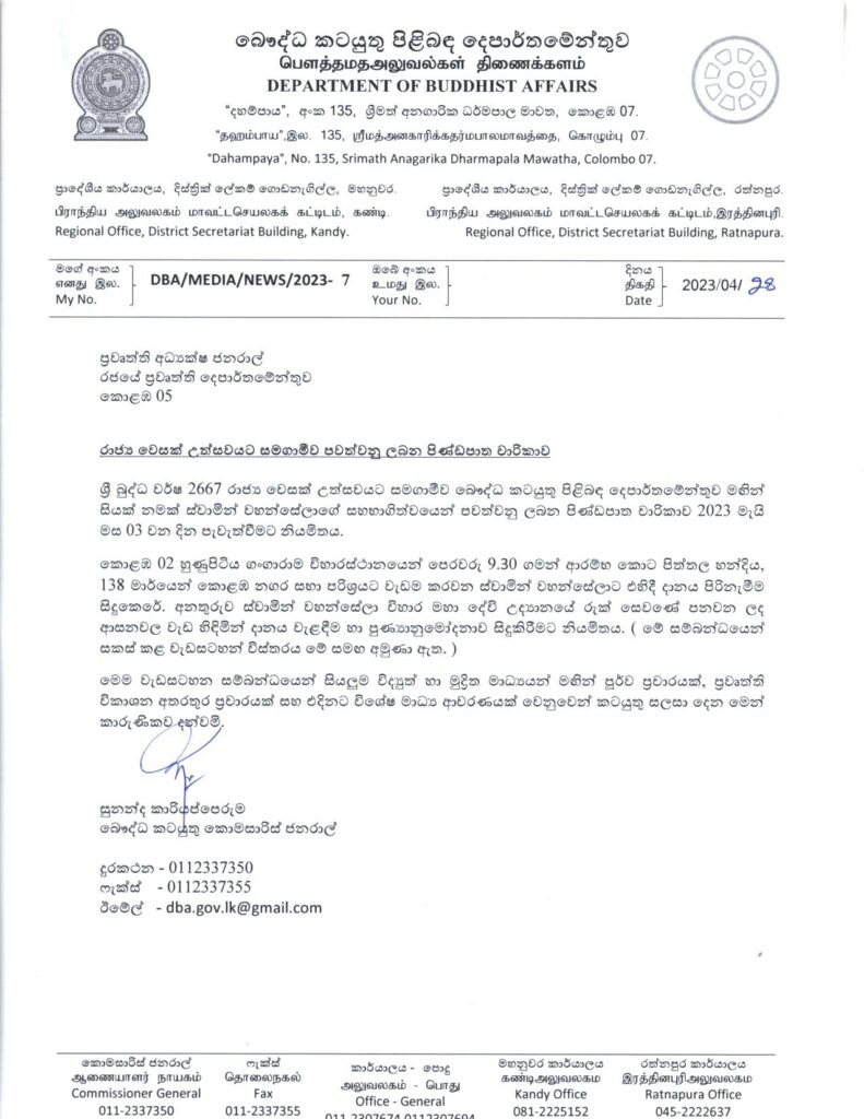 බෞද්ධ කටයුතු දෙපාර්තමේන්තුව විසින් හෙට (03) මෙම වැඩසටහන පවත්වනවා.