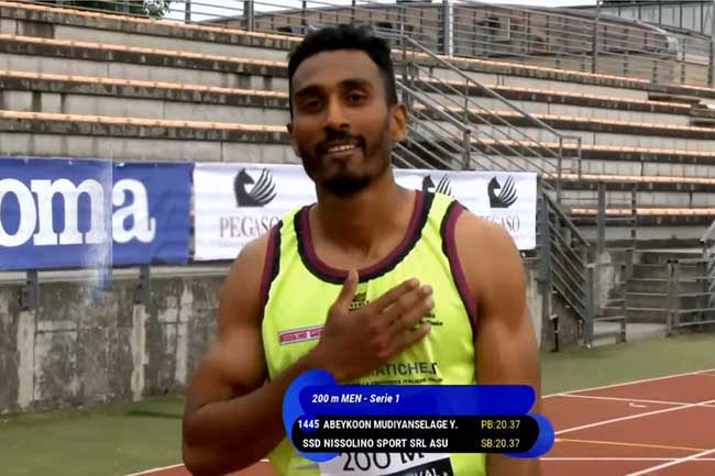 ඉතාලියේ පැවැත්වෙන ”FIRENZE SPRINT FESTIVAL” ජාත්යන්තර මලල ක්රීඩා උළෙලේ පිරිමි මීටර් 200 ඉසව්වේ ප්රථම ස්ථානය දිනා ගැනීමට ශ්රී ලංකා කෙටි දුර ධාවන ශූර යුපුන් අබේකෝන් සමත්ව තිබෙනවා.