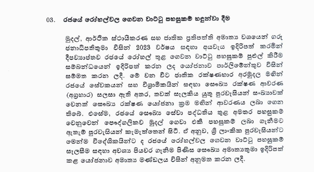 ශ්රී ලාංකික පුරවැසියන්ට මෙන්ම විදේශීකයින්ට ද රජයේ රෝහල්වල ගෙවන වාට්ටු පහසුකම් සැලසීම වෙනුවෙන් සොඛ්ය අමාත්යවරයා ඉදිරිපත් කළ යෝජනාවට මෙලෙස කැබිනට් අනුමැතිය හිමිව තිබේ.
