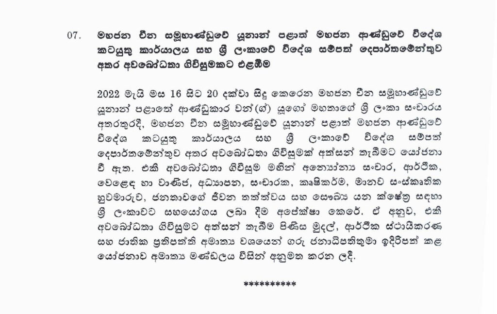 ඒ සඳහා ඉදිරිපත් වූ යෝජනාවට කැබිනට් අනුමැතිය හිමිව තිබේ.
