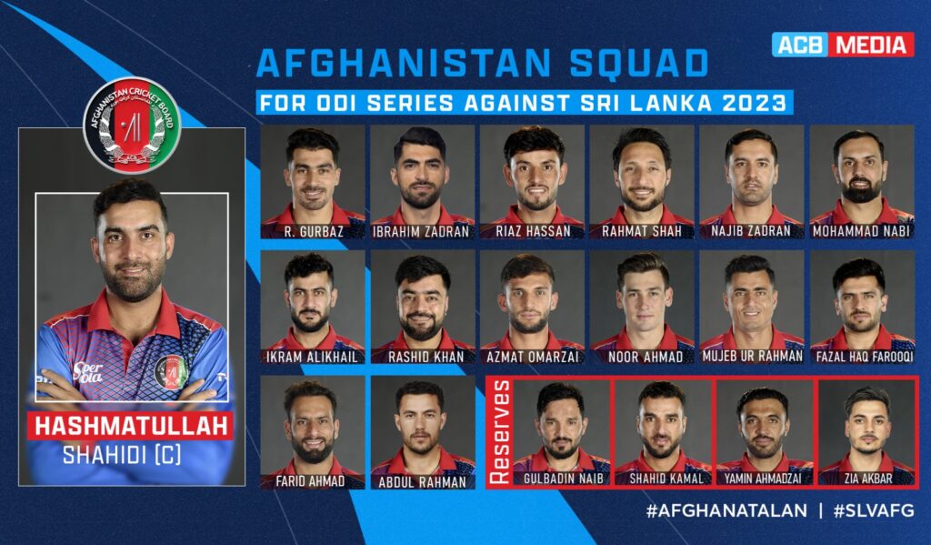 ඒ අනුව තරඟ තුනකින් සමන්විත ශ්‍රී ලංකා , ඇෆ්ගනිස්ථාන එක්දින තරඟාවලිය සඳහා HASHMATULLAH ගේ නායකත්වයෙන් යුත් ඇෆ්ගනිස්ථාන ක්‍රීඩකයින් 15 ක් නම් කර ඇත.