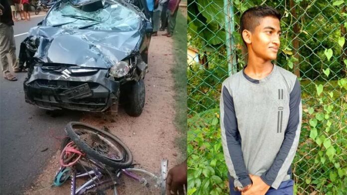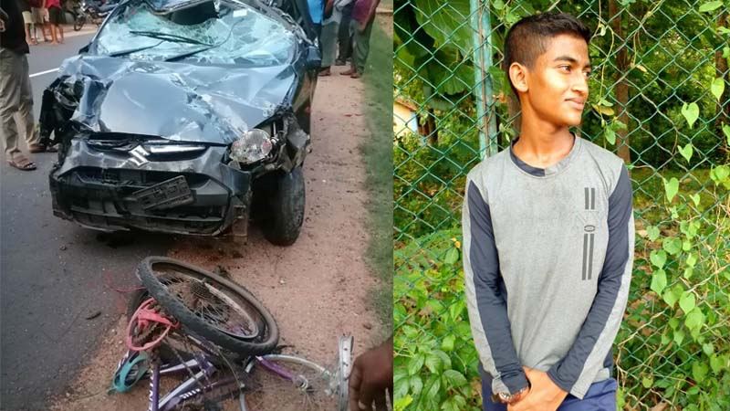 සිසුවාගේ ඉදිරියෙන් පැමිණි මෝටර් රථය , සිසුවාගේද ගැටී මාර්ගයෙන් ඉවතට පැණ පෙරලීගොස්, අසල තිබූ දුරකථන කණුවකද ගැටී නතර වී තිබේ.
