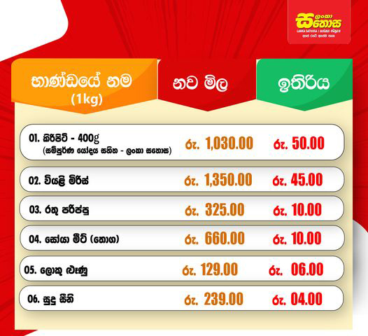 ලංකා සතෙස අත්යවශ්ය භාණ්ඩ කිහිපයක මිල පහළ දැමීමට තීරණය කර තිබෙනවා.