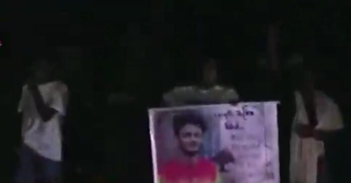 ඒ, 22 හැවිරිදි තරුණයෙක් පහර දී ඝාතනය කිරීමට, සම්බන්ධ යැයි පැවසෙන සැකකරුවන් පිරිසක් අත්අඩංගුවට නොගැනීම විරෝධය පල කරමින්.