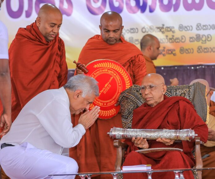 ථෙරවාදී බුදු දහම සුරක්ෂිත කර ජාත්‍යන්තරයේ ව්‍යාප්ත කිරීමේ වගකීම ඉටු කිරීමට කැපවන බව ජනාධිපති රනිල් වික්‍රමසිංහ මහතා අවධාරණය කර සිටිනවා.