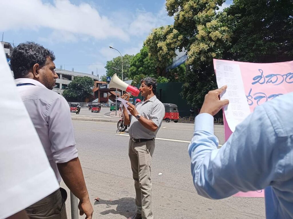 ඒ ඊයේ (03) දහවල් 12.30 ට පමණ ටෙලිකොම් මූලස්ථානය ඉදිරිපිටදී.