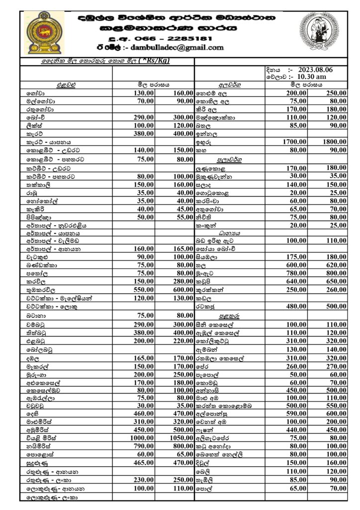 Sign in Welcome! Log into your account your username your password Forgot your password? Get help Privacy Policy Password recovery Recover your password your email A password will be e-mailed to you. Homeදේශීයඅද ඉරිදා දඹුල්ලේ එළවළු මිල දේශීය අද ඉරිදා දඹුල්ලේ එළවළු මිල By Amith Rathnaweera August 6, 2023 0 631 Share FacebookTwitterPinterestWhatsApp file දඹුල්ල ආර්ථික මධ්යස්ථානයේ අද (06) දිනයට නියමිත එළවළු මිල ගණන් නිවේදනය කර තිබෙනවා. එම මිල දර්ශකය පහතින් , file READ: උසස් පෙළ නිසා ලයිට් කැපීම නැවැත්වීමට කළ ඉල්ලීම අධිකරණය ප්රතික්ෂේප කරයි Tags#dambulla_lka#Price of vegetables_lka Share FacebookTwitterPinterestWhatsApp Previous articleසියලුම ජාතීන්ට සමාන අයිතිවාසිකම් ලබා දිය යුතුයි- මිහින්තලේ හිමිNext articleලබන වසරේ සිට පාසල් වාර විභාග වසරට ම එකයි: වාරයකට එක වැඩ පොතක් Amith Rathnaweerahttps://www.facebook.com/profile.php?id=100008353692046 RELATED ARTICLES දේශීය BREAKING අද මධ්යම රාත්රියේ සිට 18 දක්වා පෙට්රල් වාහන සඳහා ‘QR’ ක්රමය ඉවතට April 11, 2026 දේශීය ගල් අගුරු හොදද නැද්ද බලන්න මම කාලා බලන්නේ නැහැ ඒක කරන්නේ පරීක්ෂණාගාරවල නියමිත විදියට, ජනපති අනුර කුමාර දිසානායක April 7, 2026 දේශීය මෙහෙම ගියොත් ලංකා රග්බි වලපල්ලටම යයිද? March 27, 2026 නවතම වීඩියෝ සාම පාගමන උතුරු නැගෙනහිරට අහිමිඇයි ?සුනඛයින් සමග භික්ෂුන් පාගමන් ගියේ නෑ කස්සප හිමි මෙන්න කියපු කථාව මේක ගායන කර්මාන්තයටම බලපානවා.රු10000 ක් අය කිරීම ගැන ශ්රී ලංකා ගායක ගායිකා සංගමය හෙළිකලදේ ගෑස් නැති බවට අසත්ය ප්රකාශ කර,සැගවු මහනුවර වෙළෙඳසැලක් මාට්ටු. සමාජය වෙනස් කිරීමට අධ්යාපනය පද්ධතිය හරහා රජයක් ලෙස කටයුතු කරනවා!! අගමැතිණිය කියයි. පුවත් පාප්වහන්සේට දෝශාරෝපණය කළ ට්රම්ප් තමන් ජේසුස්ට සමාන කර ගනී. April 13, 2026 BREAKING අද මධ්යම රාත්රියේ සිට 18 දක්වා පෙට්රල් වාහන සඳහා ‘QR’ ක්රමය ඉවතට April 11, 2026 ගල් අගුරු හොදද නැද්ද බලන්න මම කාලා බලන්නේ නැහැ ඒක කරන්නේ පරීක්ෂණාගාරවල නියමිත විදියට, ජනපති අනුර කුමාර දිසානායක April 7, 2026 මෙහෙම ගියොත් ලංකා රග්බි වලපල්ලටම යයිද? March 27, 2026 Load more පැරණි පුවත් April 2026 March 2026 February 2026 January 2026 December 2025 November 2025
