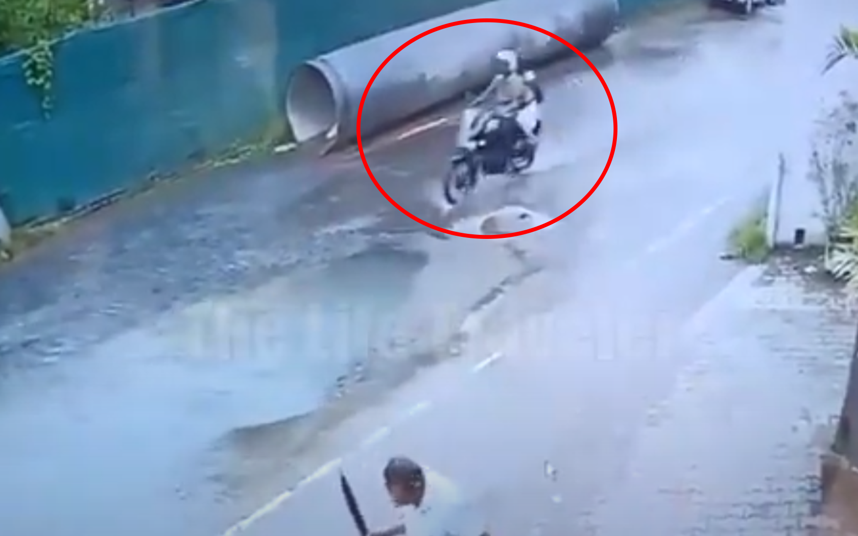 දියණිය සමඟ යතුරු පැදියක ගමන් කරමින් සිටි පුද්ගලයෙකු මහ පාර මැද වතුරවලකට වැටී යතුරු පැදියත් සමඟ ගිලෙන ආකරය දක්වෙන වීඩියෝවක් සමාජ මාධ්ය තුළ හුවමාරු වෙනවා.