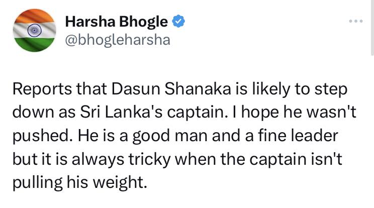 දසුන් නායකත්වයෙන් ඉවත් කිරීම සම්බන්ධයෙන් ඉන්දීය ක්රිකට් විස්තර ප්රකාශකයකු වන Harsha Bhogle ඇතුළු ක්රිකට් ප්රවීණයින් කිහිප දෙනෙකු පළ කර තිබූ අදහස් පහතින්.