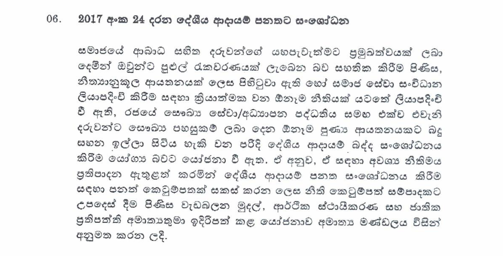 2017 අංක 24 දරන දේශීය ආදායම් පනත සංශෝධනයට තීරණය කර තිබෙනවා.