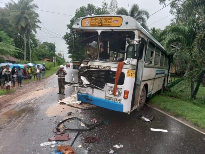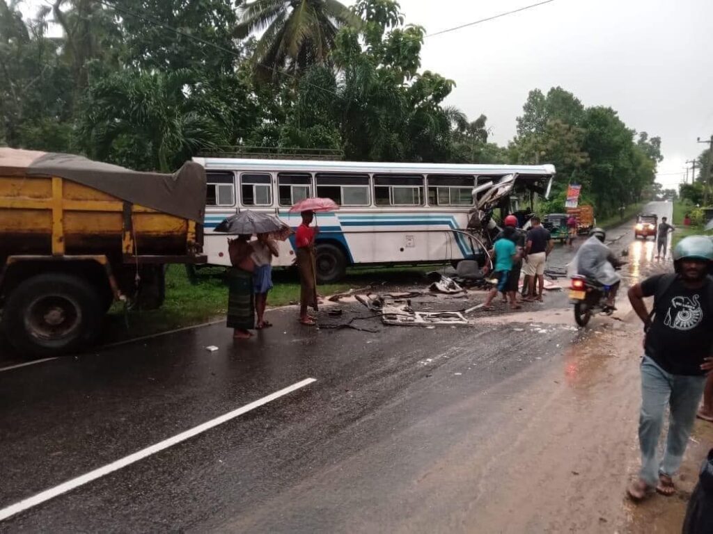 වැලි ප්රවාහනය කරමින් තිබූ ටිපර් රථයක බස් රථය ගැටීමෙන් අද (06) උදෑසන මෙම අනතුර සිදුවුණා.