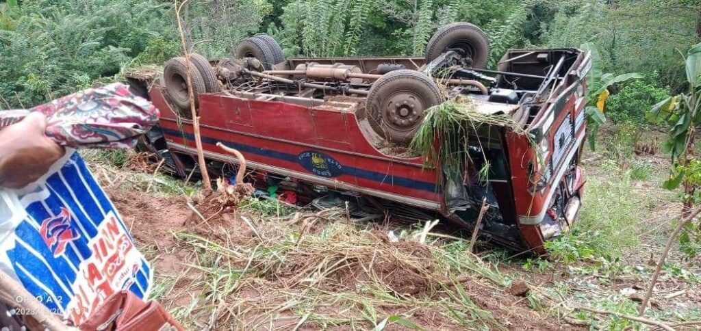 මිගහකිවුල කැටවත්ත මාර්ගයේ යෝධඋල්පත ප්රදේශයේදී ලංගම බස් රථයක් ප්රපාතයකට පෙරළී ආනතුරක් සිදුව තිබෙනවා.