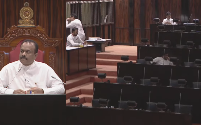 පාර්ලිමේන්තුවේ ඝණ පූර්ණය නොමැති වීමෙන් විවාදය අද දක්වා කල් තබන බවයි නියෝජ්ය කථානායකවරයා පාර්ලිමේන්තුවට දැනුම්දුන්නේ.