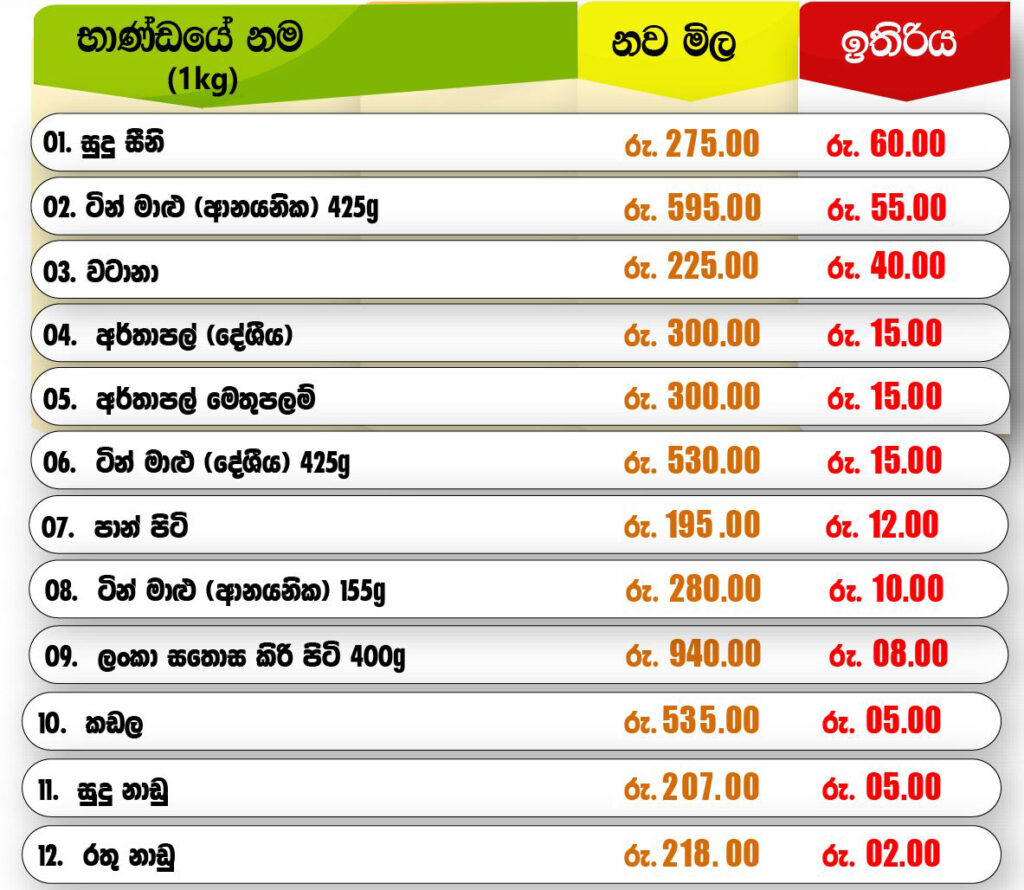 එම මිල ගණන් පහතින්,